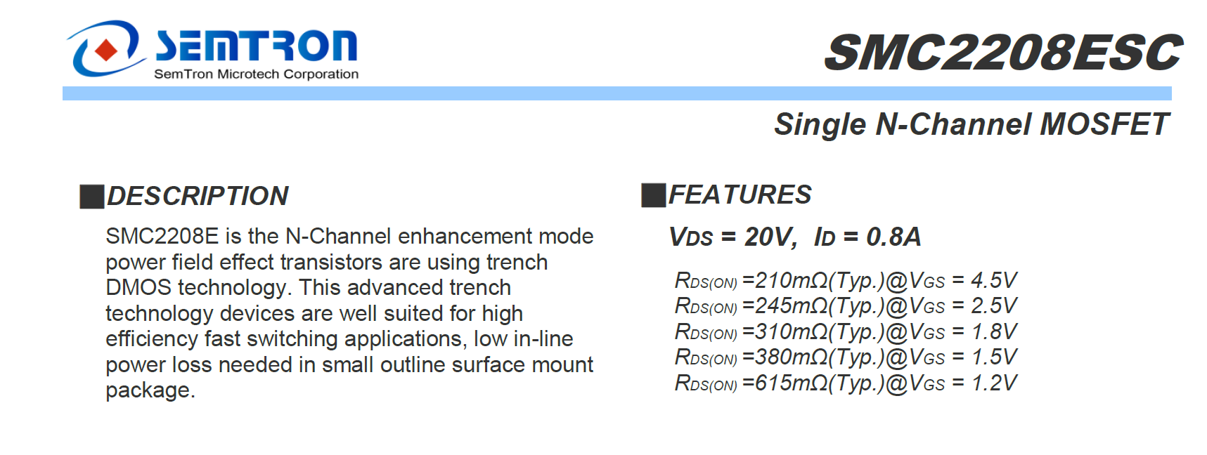 小包裝,低阻抗SMC2208,超優能MOSFET