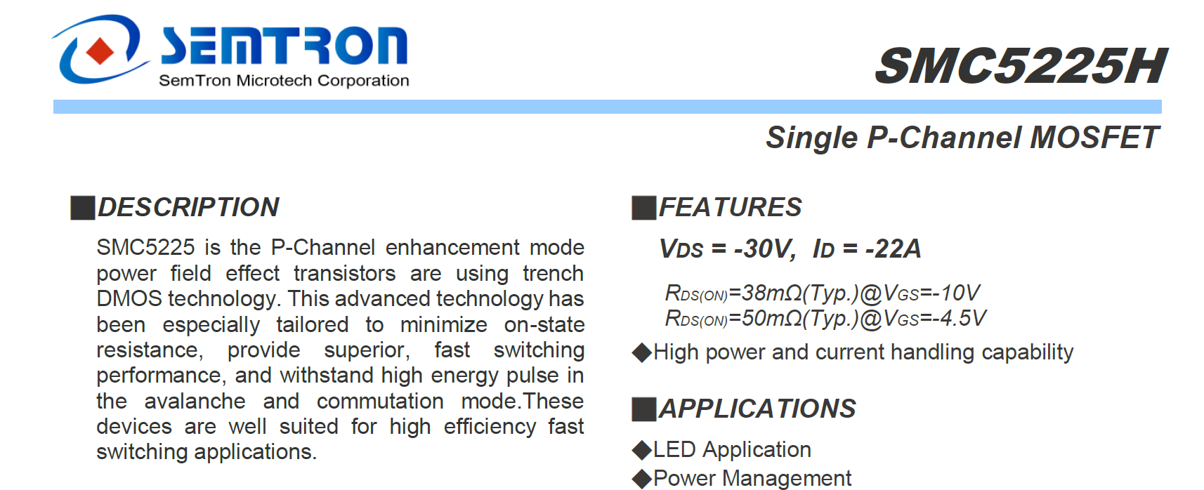 SEMTRON 出品 , SMC5225H , TO-252封裝
